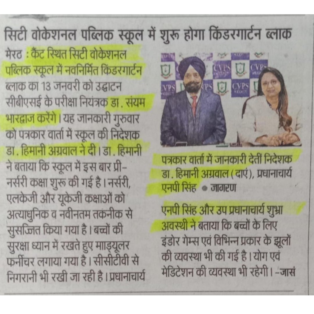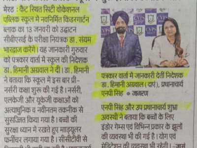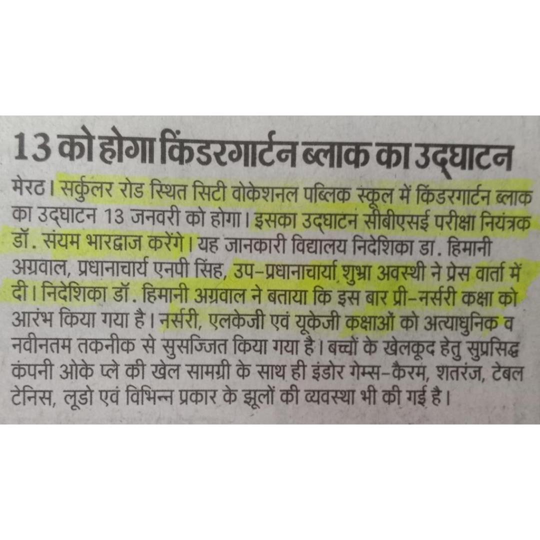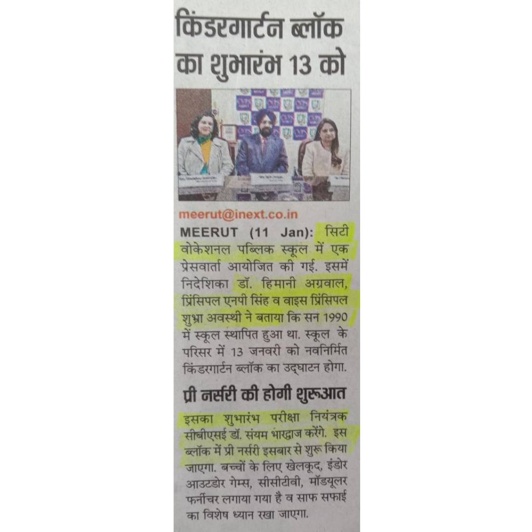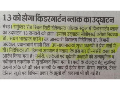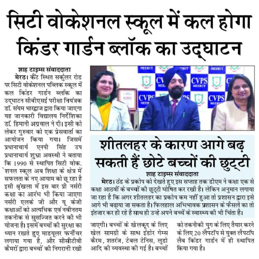 A press conference was organized at City Vocational Public School. The Director of School Dr. Himani Agarwal, Principal Mr. N.P. Singh and Vice Principal Ms. Shubhra Awasthi apprised the reporters that the school was established in 1990 and has been soaring to greater heights since then.