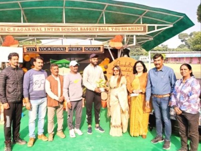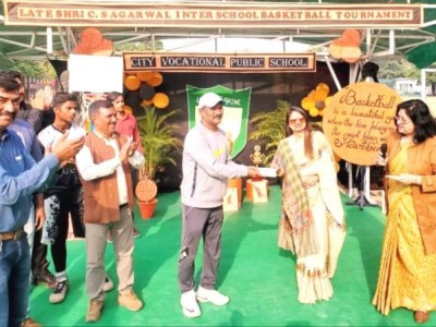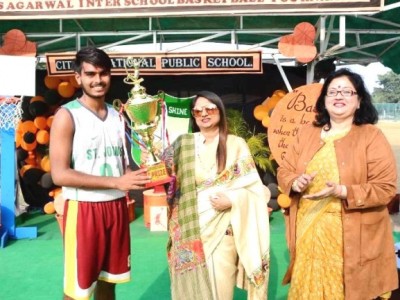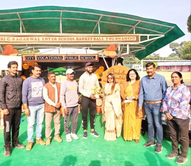 Besides academics, sports are also considered as an integral part of the overall development. So in the fond memory of the revered founder Late Shri C S Agarwal the school organized an Interschool Basketball Tournament. The Chief Guest of the day Mr. Manish Bansal, Municipal Commissioner, Meerut and the Guest of Honour Dr.Sarojini Agarwal, Chairperson of the institution was welcomed with a green bouquet by the Director Mr. Prem Mehta and Principal Ms. Anita Tripathi. The event commenced by paying hearty homage to the founder Late Shri C S Agarwal followed by kindling of lamp.