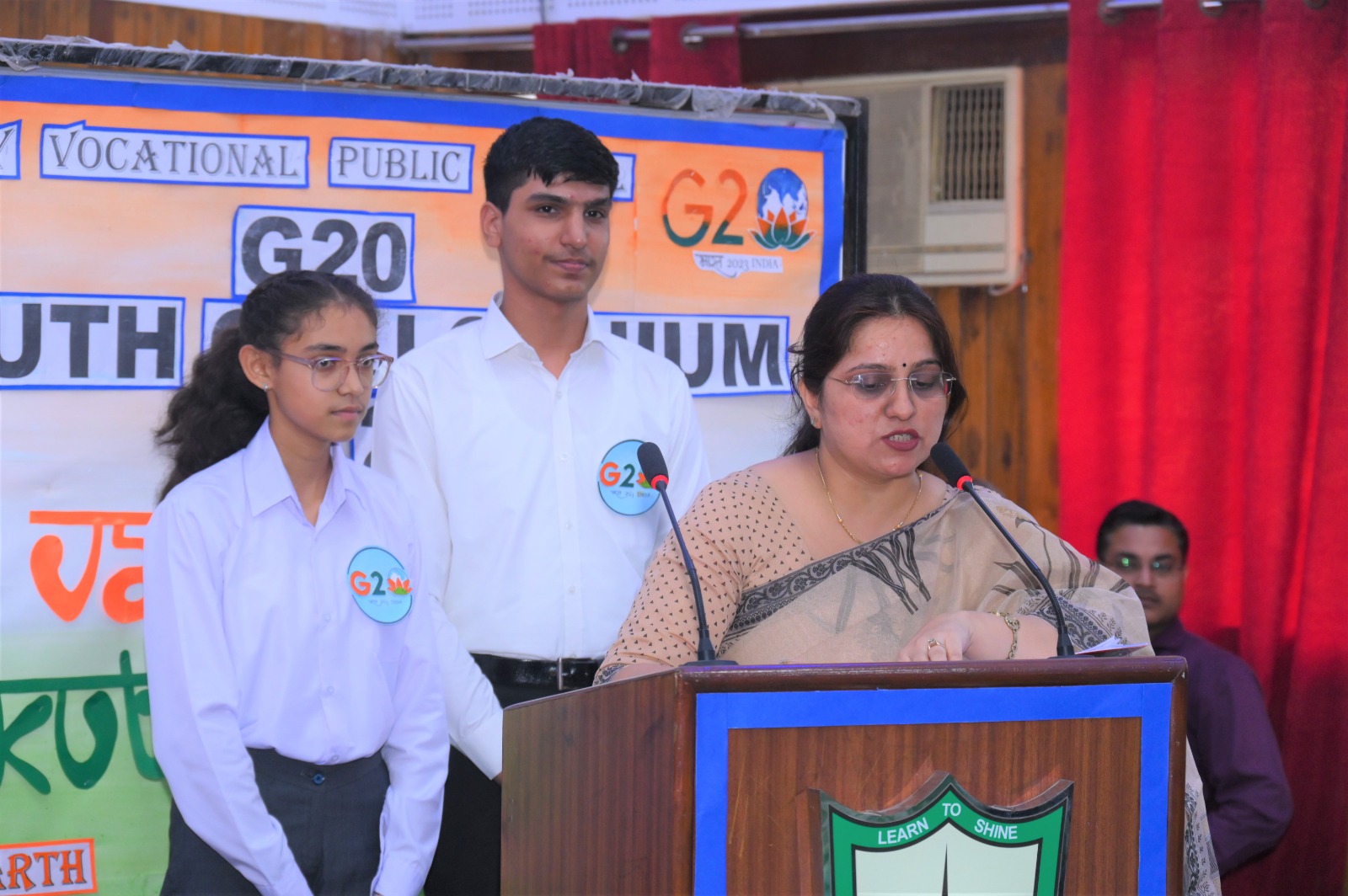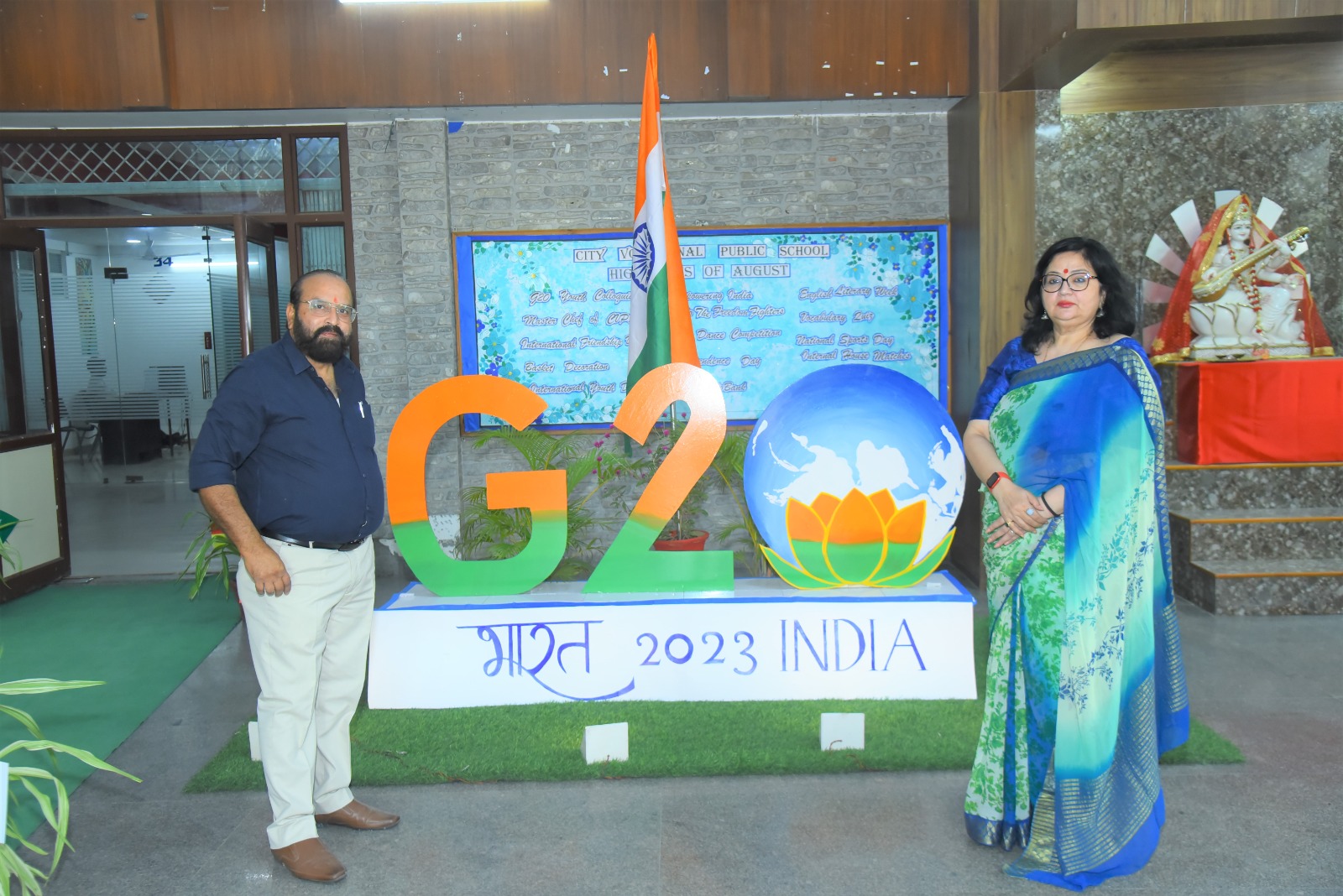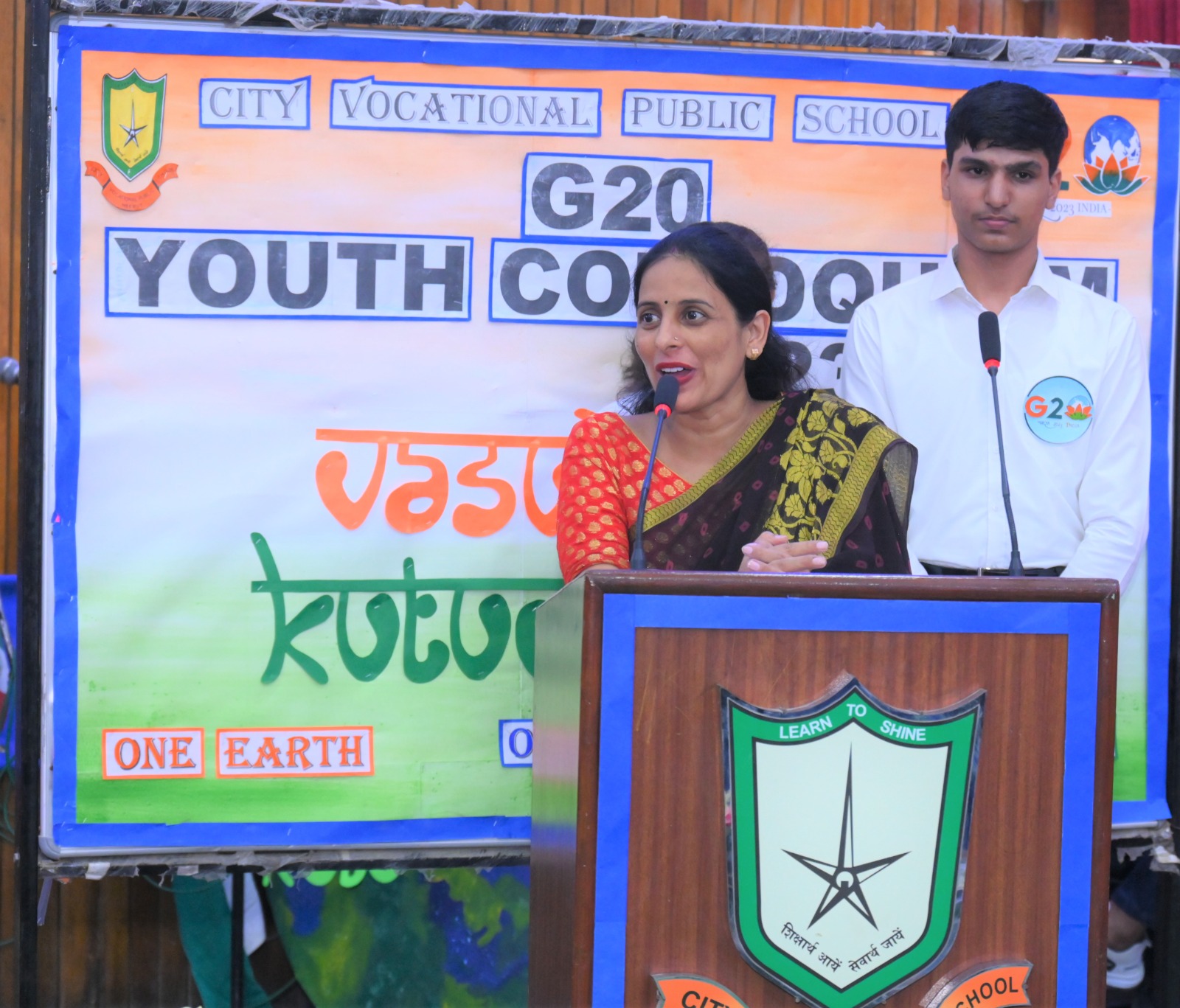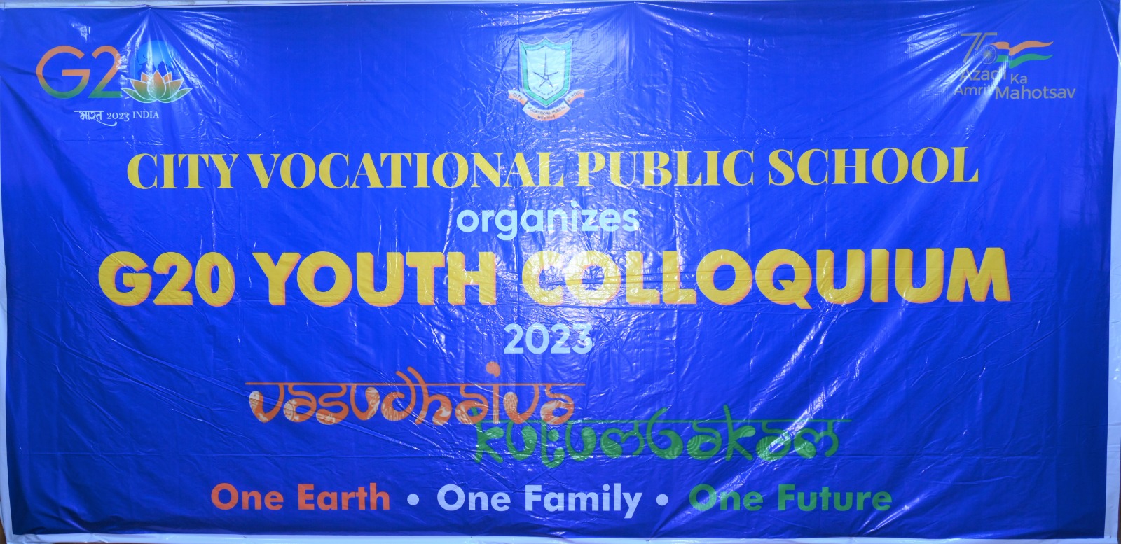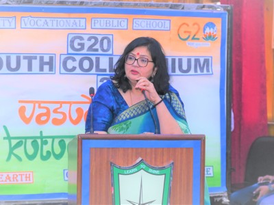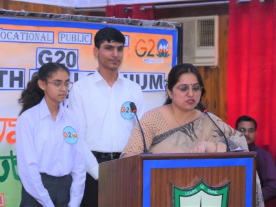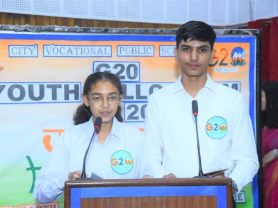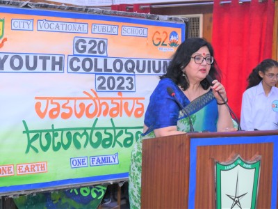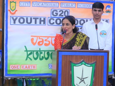 City Vocational Public School took these words and delivered an example by organizing G20 Youth Colloquium , on Wednesday 9th August 2023 , in the School Auditorium . The event became a massive success with the overwhelming enthusiasm of the attendees and the presence of our esteemed Chief Guest Dr. Sanjay Sharma , a renowned Neurologist of western UP, Hon'ble School Management and the School Principal Mrs. Anita Tripathi .