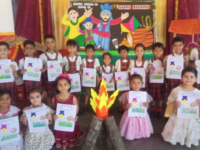A special assembly was conducted on the occasion. The school principal ms. Anita tripathi enlightened the students about the various aspects of this harvest festival . Together with their teachers they matched step to the vigorous rhythms that are customary on this occasion. Dhol beats and punjabi folk music added to the fun and excitement. They also enjoyed singing baisakhi songs with their teachers.