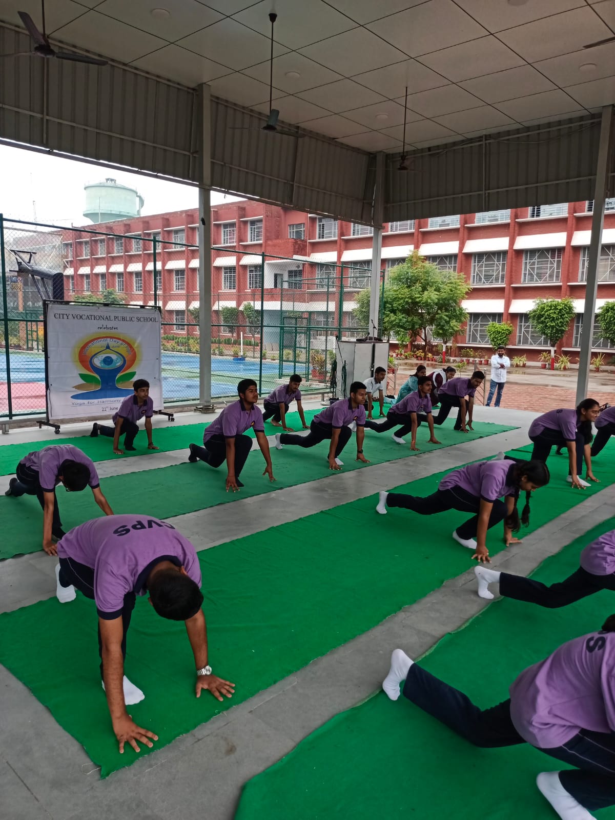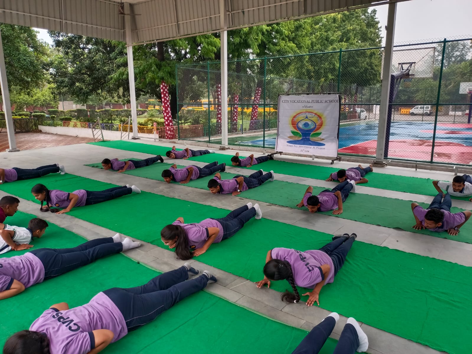 International Yoga Day observed on June 21st, is a global event that promotes the physical, mental, and spiritual benefits of practising Yoga. City Vocational Public School organized a special event to commemorate this day, aiming to create awareness about importance of Yoga and encourage students to embrace a healthier lifestyle.