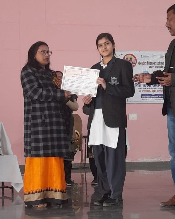 With reference to the 6th edition of Pariksha Pe Charcha, an On the Spot Painting Competition was organized by Kendriya Vidyalaya Dogra Lines, Meerut. Around 100 students from different schools of Meerut participated with great zeal and zest in the competition and divulged their artistic skills. The theme was the Mantras suggested by PM Modi to reduce exam stress and become exam warrior. Megha and Kritika from CVPS partook in the competition and brought laurels to school by bagging 2nd and 3rd prize respectively.