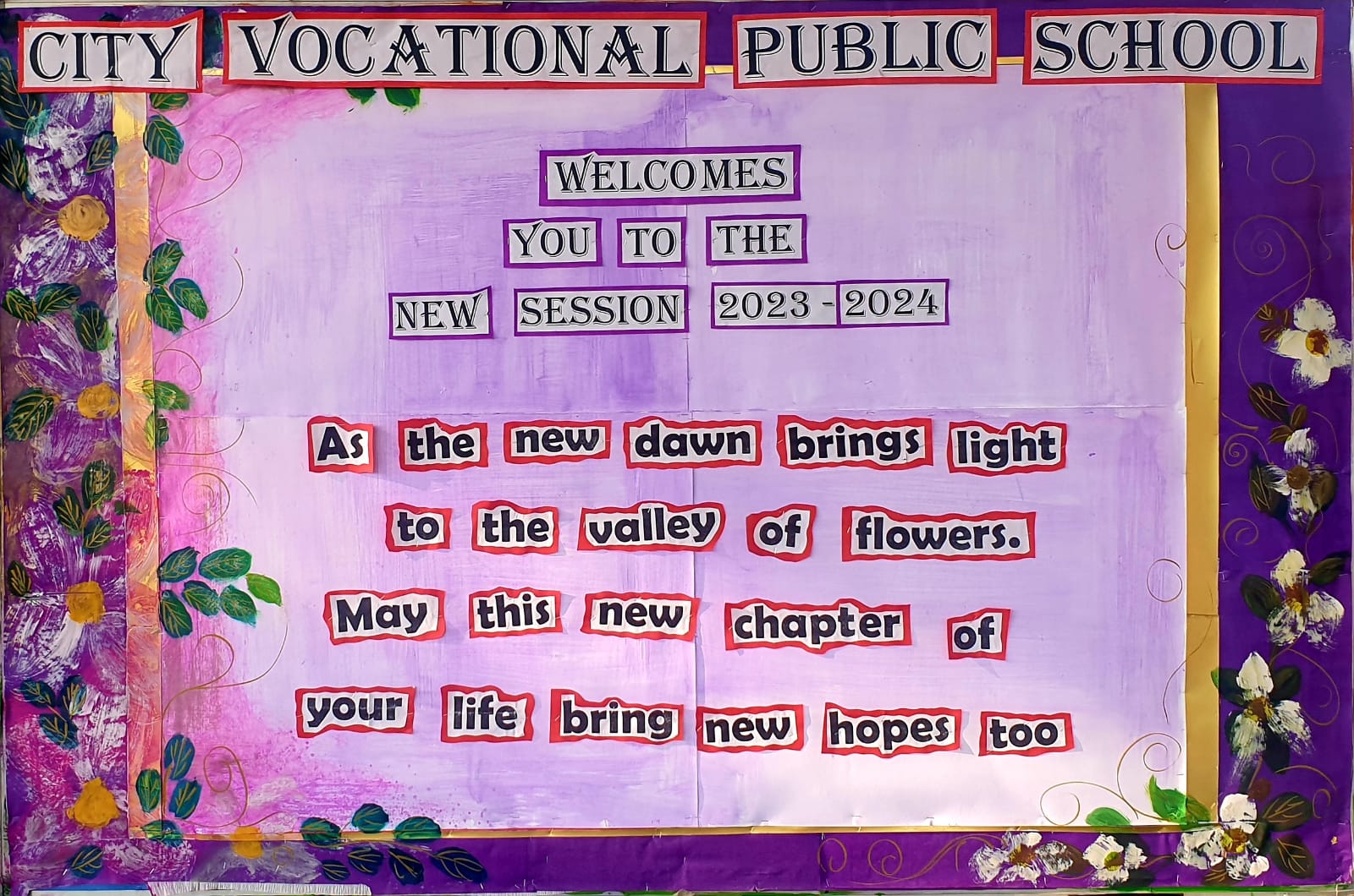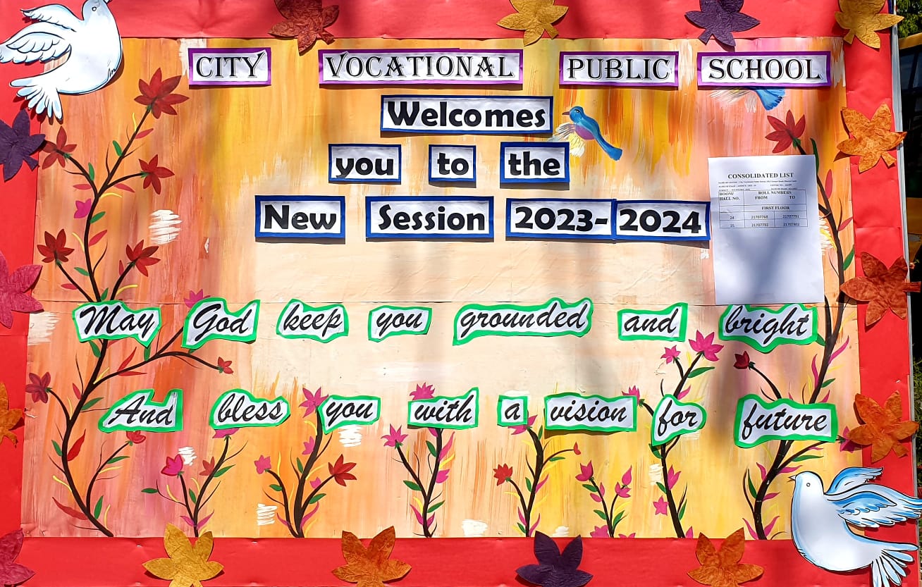The new academic session 2023-24 , commenced at city vocational public school on 3 april 2023 , with a very warm welcome to the students who returned refreshed and energised for another academic year.