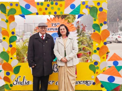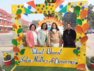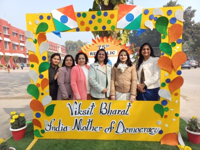 In a grand display of Patriotism and National Pride, City Vocational Public School embraced the theme of the 75th Republic Day *Bharat: The Mother Of Democracy* with poise and enthusiasm. The Chief Guest of the occasion was MLC and dynamic Chairperson of the School Dr. Sarojini Agarwal. A cordial Green Welcome was accorded to her by the Director of the School Dr. Himani Agarwal.