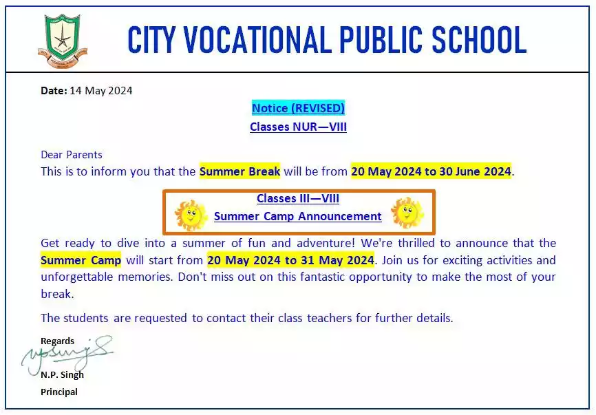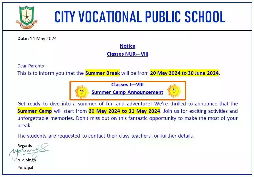 School Timings