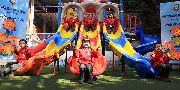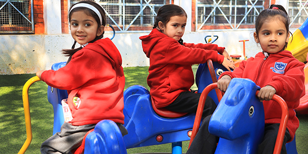 Our KG wing `Little Dolphins' is a beautiful and colourful world that cradles the tiny kids and provides them the perfect atmosphere to grow and learn in the most natural way. The aesthetic ambience of the KG wing executes a sense of comfort for the tiny tots. Swings, slides, tricycles, imported wooden toys, teaching aids, a separate play field for them are all things that provide the kids an environment where they love to come every day. They feel disappointed only on holidays and weekends and wish they would come here every day. A new beautiful play centre with kaleidoscopic colours and green turf floor is simply loved by kids. A spacious hall for their playful activities is again something they simply adore.